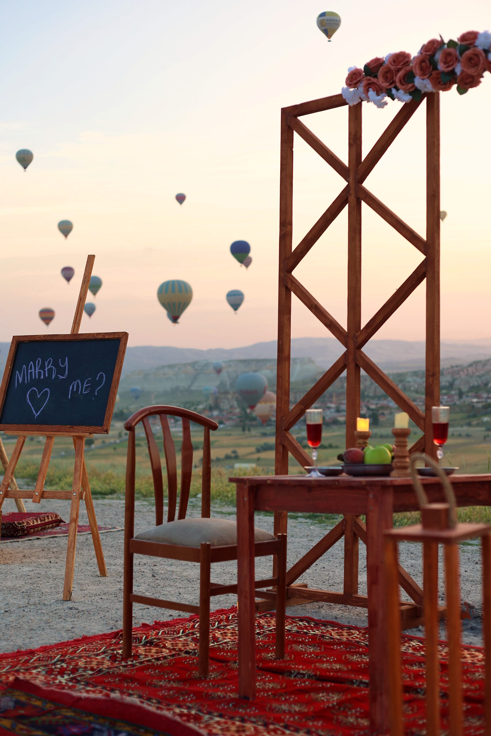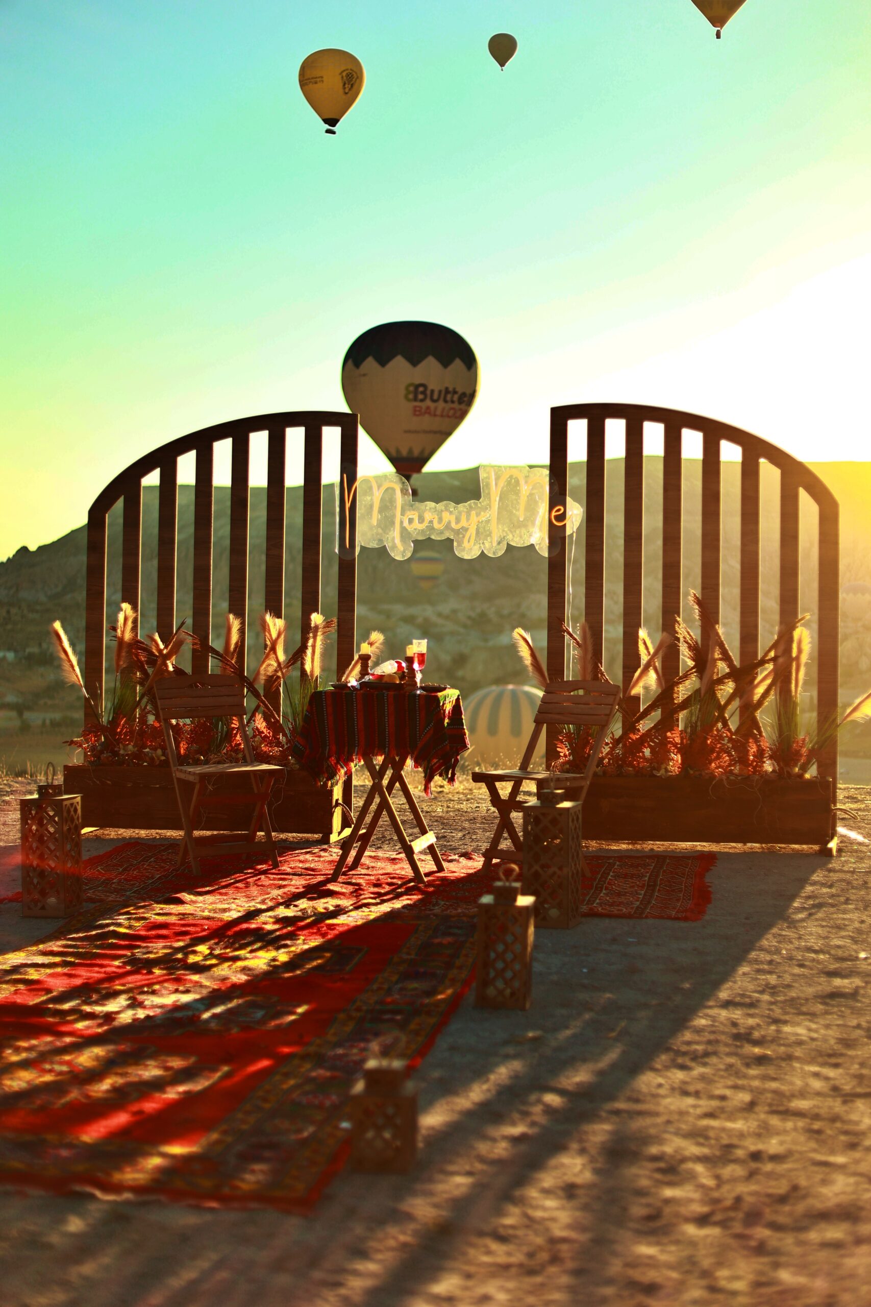 Kapadokya'nın büyüleyici doğasında, sıcak hava balonlarının süzüldüğü masalsı bir manzarada, sevgilinize yapacağınız evlilik teklifi için özel olarak tasarlanmış bir konsepttir. Beyaz veya ahşap seçeneklerimiz ile sadelike ve şıklığa önem veren çiftlerimiz için düşünülmüştür.